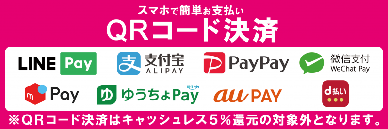 3月1日(日)より、各種QRコード決済を導入致しました。